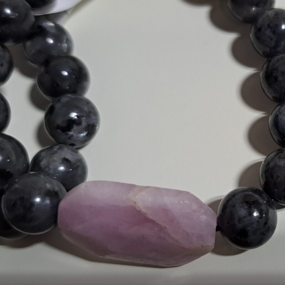 Wearing Larvikite and Kunzite together creates a synergistic dance of energies. The grounding properties of Larvikite provide a stable foundation, while the heart-opening energy of Kunzite uplifts your spirit & supports both your practical endeavors and your spiritual growth.